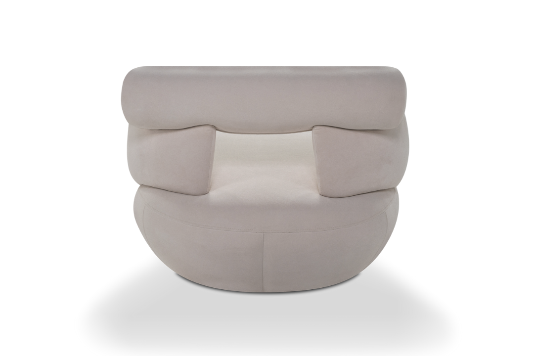 com forma de abraço e aura magnética. Ela é um convite à entrega do corpo ao mais pleno conforto.