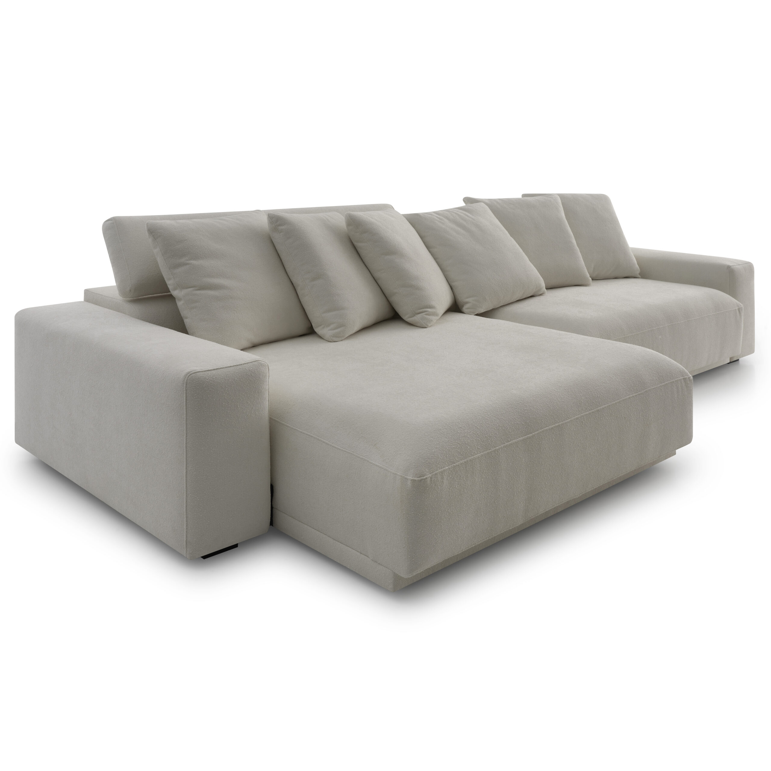Sofá Aurora: assinatura de design e conforto contínuo, perfeito para criar um ponto focal.